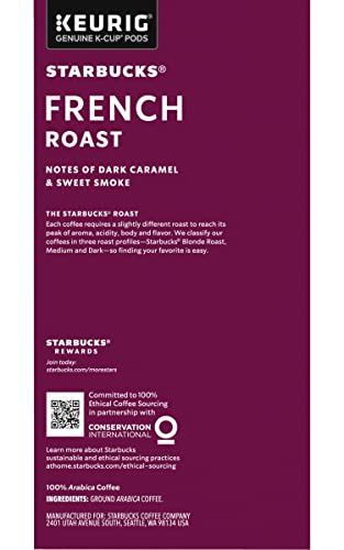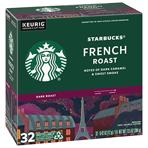 - Starbucks Coffee K-Cup Pods, French Roast, Dark Roast Coffee, Notes of Dark Caramel & Sweet Smoke, Keurig Genuine K-Cup Pods, 32 CT (Pack of 2)