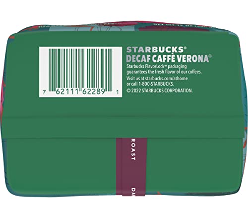 • Starbucks Decaf Caffe Verona Ground Coffee, Dark Roast, Decaffeinated Ground Coffee, 100% Arabica Coffee, Dark Cocoa Texture, 12-Ounce Bag (Pack of 6 Bags)