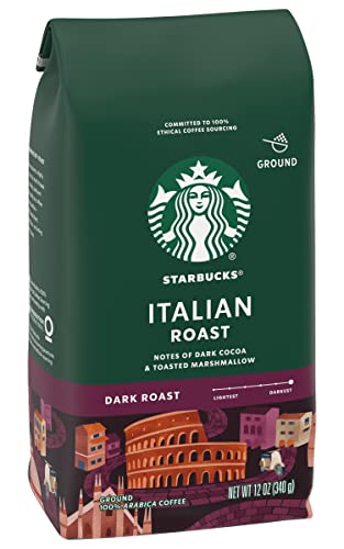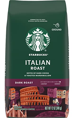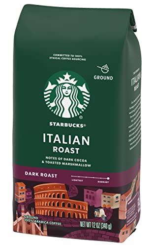 Starbucks Ground Coffee, Italian Roast, Dark Roast Coffee, Notes of Dark Cocoa & Toasted Marshmallow, Ground 100% Arabica Coffee, 12-Ounce Bag (Pack of 6)