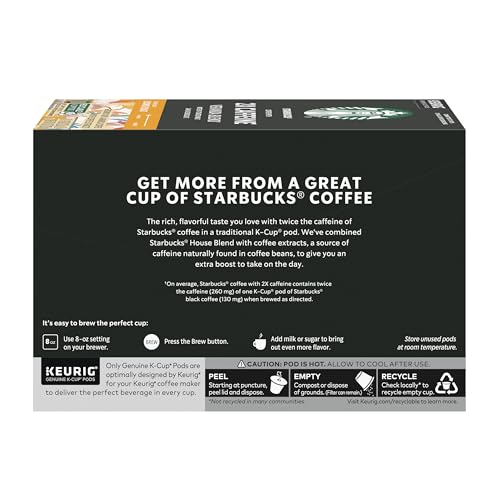 - 2X THE CAFFEINE: Starbucks Coffee With 2X Caffeine Veranda Blend K-Cup Pods deliver 2X the caffeine compared to one pod of Starbucks K-Cup black coffee when brewed as directed. Includes 60 total coffee pods for Keurig coffee makers.